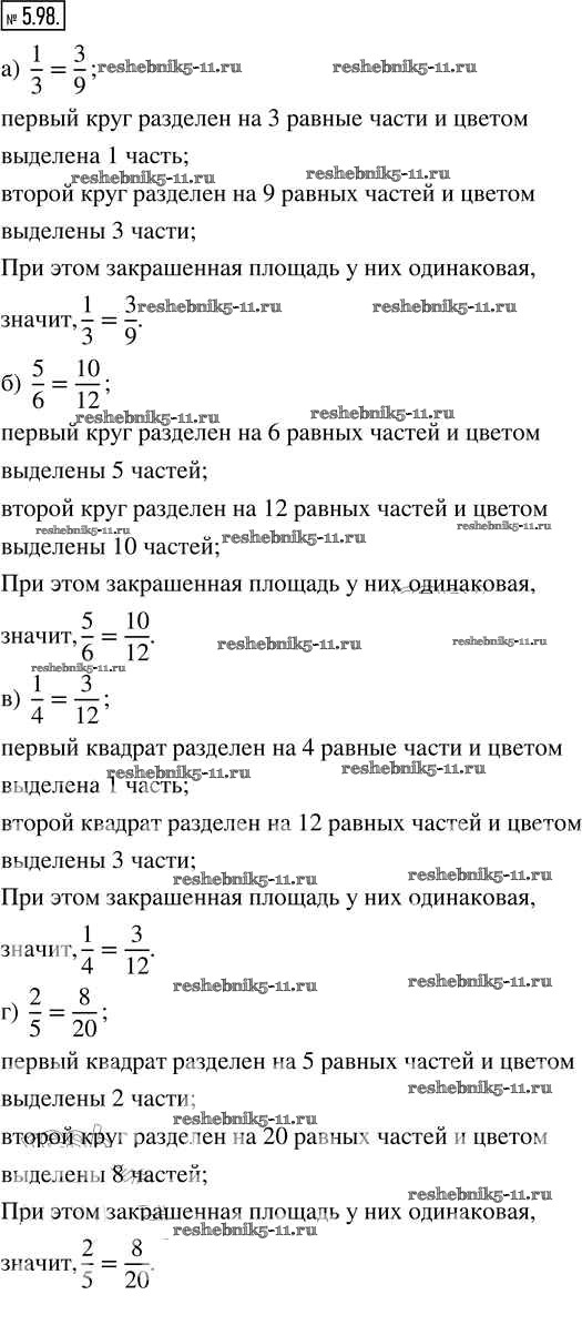 Готовая домашняя работа с ответами по Математике за 5 класс Виленкин, Жохов, Чесноков, Александрова, Шварцбурд Учебник Часть 2 Просвещение 2021 - Глава 5. Обыкновенные дроби 5.98
