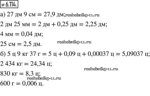 Готовая домашняя работа с ответами по Математике за 5 класс Виленкин, Жохов, Чесноков, Александрова, Шварцбурд Учебник Часть 2 Просвещение 2021 - Глава 6. Десятичные дроби 6.114