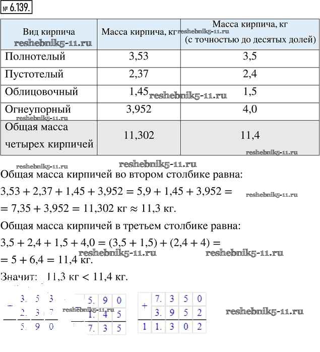 Готовая домашняя работа с ответами по Математике за 5 класс Виленкин, Жохов, Чесноков, Александрова, Шварцбурд Учебник Часть 2 Просвещение 2021 - Глава 6. Десятичные дроби 6.139