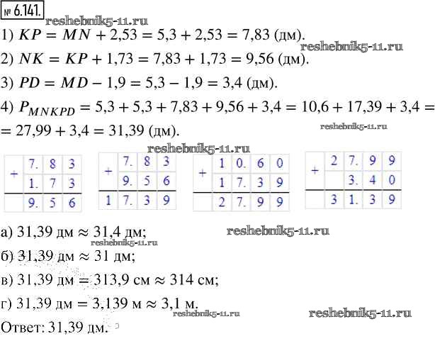 Готовая домашняя работа с ответами по Математике за 5 класс Виленкин, Жохов, Чесноков, Александрова, Шварцбурд Учебник Часть 2 Просвещение 2021 - Глава 6. Десятичные дроби 6.141