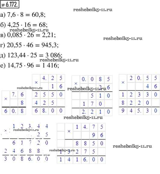 Готовая домашняя работа с ответами по Математике за 5 класс Виленкин, Жохов, Чесноков, Александрова, Шварцбурд Учебник Часть 2 Просвещение 2021 - Глава 6. Десятичные дроби 6.172