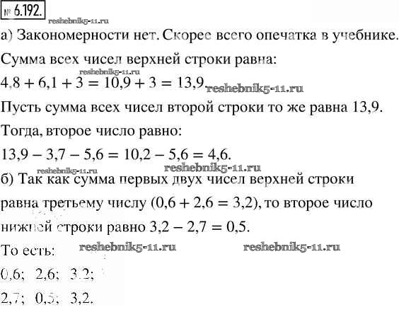 Готовая домашняя работа с ответами по Математике за 5 класс Виленкин, Жохов, Чесноков, Александрова, Шварцбурд Учебник Часть 2 Просвещение 2021 - Глава 6. Десятичные дроби 6.192