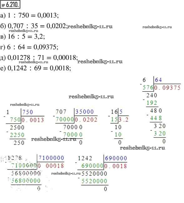 Готовая домашняя работа с ответами по Математике за 5 класс Виленкин, Жохов, Чесноков, Александрова, Шварцбурд Учебник Часть 2 Просвещение 2021 - Глава 6. Десятичные дроби 6.210