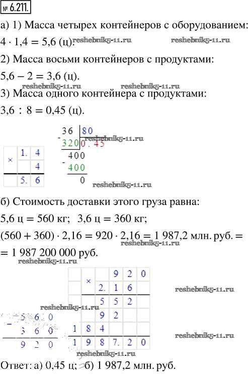 Готовая домашняя работа с ответами по Математике за 5 класс Виленкин, Жохов, Чесноков, Александрова, Шварцбурд Учебник Часть 2 Просвещение 2021 - Глава 6. Десятичные дроби 6.211