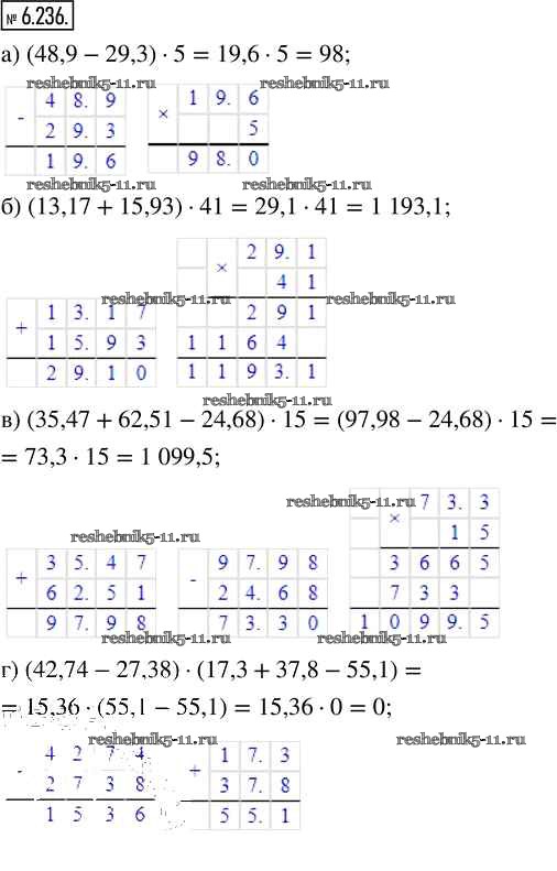 Готовая домашняя работа с ответами по Математике за 5 класс Виленкин, Жохов, Чесноков, Александрова, Шварцбурд Учебник Часть 2 Просвещение 2021 - Глава 6. Десятичные дроби 6.236