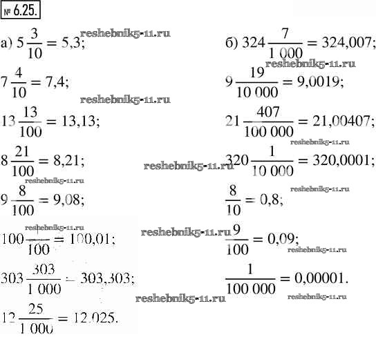 Готовая домашняя работа с ответами по Математике за 5 класс Виленкин, Жохов, Чесноков, Александрова, Шварцбурд Учебник Часть 2 Просвещение 2021 - Глава 6. Десятичные дроби 6.25