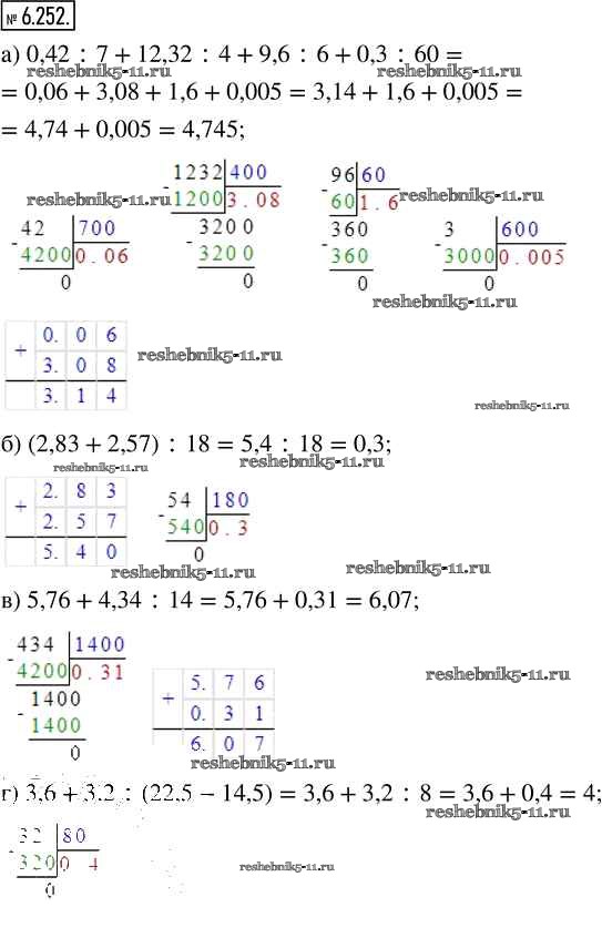 Готовая домашняя работа с ответами по Математике за 5 класс Виленкин, Жохов, Чесноков, Александрова, Шварцбурд Учебник Часть 2 Просвещение 2021 - Глава 6. Десятичные дроби 6.252