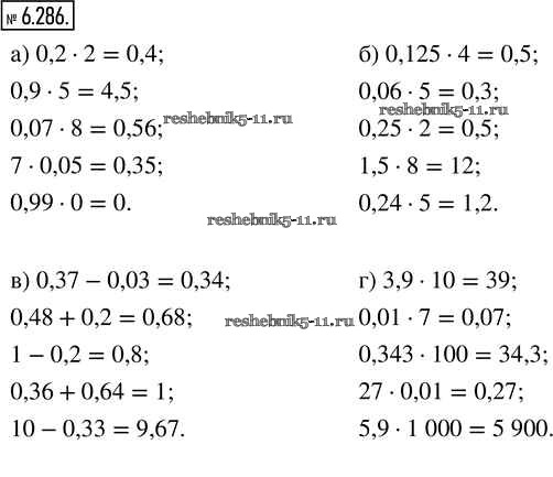 Готовая домашняя работа с ответами по Математике за 5 класс Виленкин, Жохов, Чесноков, Александрова, Шварцбурд Учебник Часть 2 Просвещение 2021 - Глава 6. Десятичные дроби 6.286