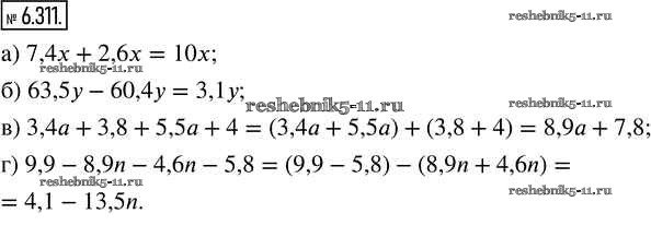 Готовая домашняя работа с ответами по Математике за 5 класс Виленкин, Жохов, Чесноков, Александрова, Шварцбурд Учебник Часть 2 Просвещение 2021 - Глава 6. Десятичные дроби 6.311
