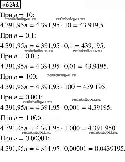 Готовая домашняя работа с ответами по Математике за 5 класс Виленкин, Жохов, Чесноков, Александрова, Шварцбурд Учебник Часть 2 Просвещение 2021 - Глава 6. Десятичные дроби 6.343