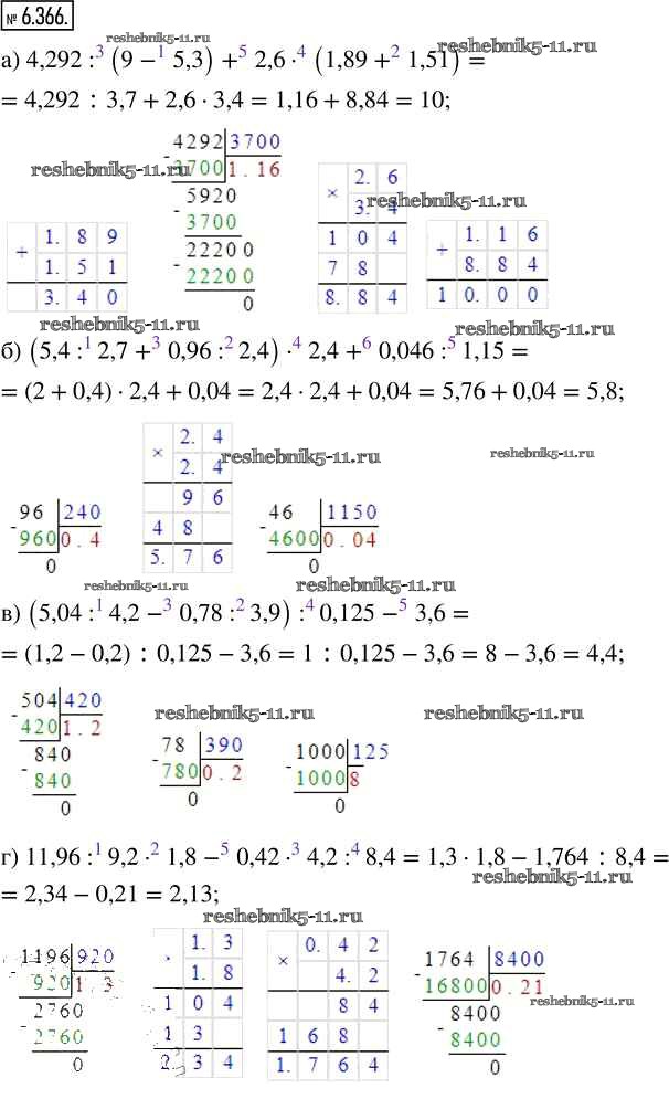 Готовая домашняя работа с ответами по Математике за 5 класс Виленкин, Жохов, Чесноков, Александрова, Шварцбурд Учебник Часть 2 Просвещение 2021 - Глава 6. Десятичные дроби 6.366