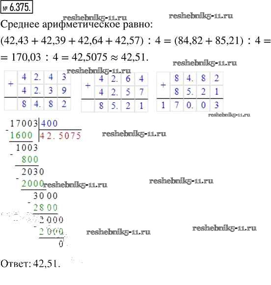Готовая домашняя работа с ответами по Математике за 5 класс Виленкин, Жохов, Чесноков, Александрова, Шварцбурд Учебник Часть 2 Просвещение 2021 - Глава 6. Десятичные дроби 6.375