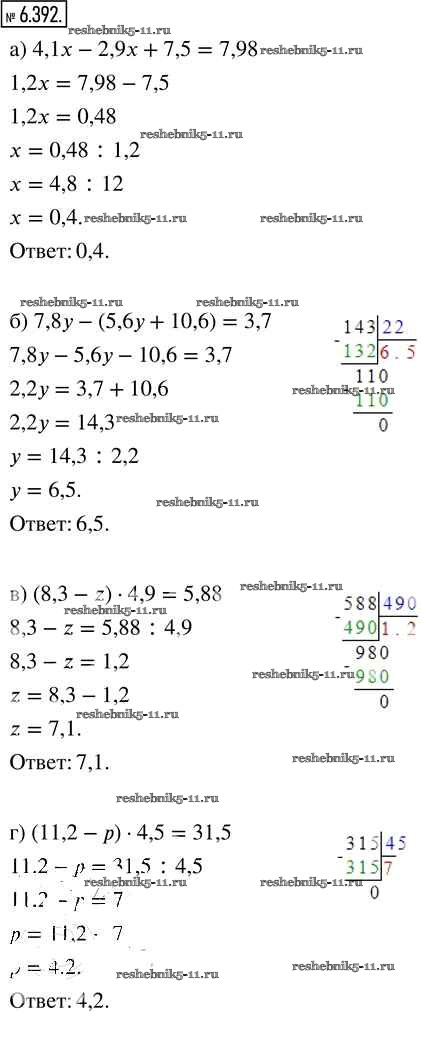 Готовая домашняя работа с ответами по Математике за 5 класс Виленкин, Жохов, Чесноков, Александрова, Шварцбурд Учебник Часть 2 Просвещение 2021 - Глава 6. Десятичные дроби 6.392