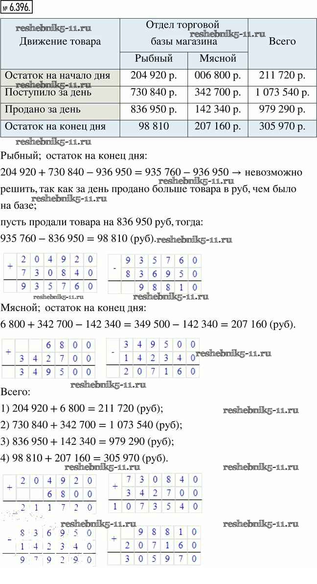 Готовая домашняя работа с ответами по Математике за 5 класс Виленкин, Жохов, Чесноков, Александрова, Шварцбурд Учебник Часть 2 Просвещение 2021 - Глава 6. Десятичные дроби 6.396