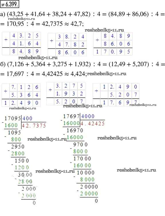 Готовая домашняя работа с ответами по Математике за 5 класс Виленкин, Жохов, Чесноков, Александрова, Шварцбурд Учебник Часть 2 Просвещение 2021 - Глава 6. Десятичные дроби 6.399
