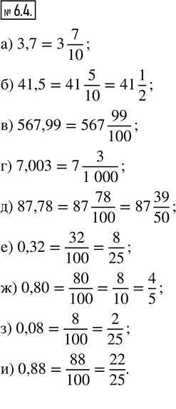 Готовая домашняя работа с ответами по Математике за 5 класс Виленкин, Жохов, Чесноков, Александрова, Шварцбурд Учебник Часть 2 Просвещение 2021 - Глава 6. Десятичные дроби 6.4