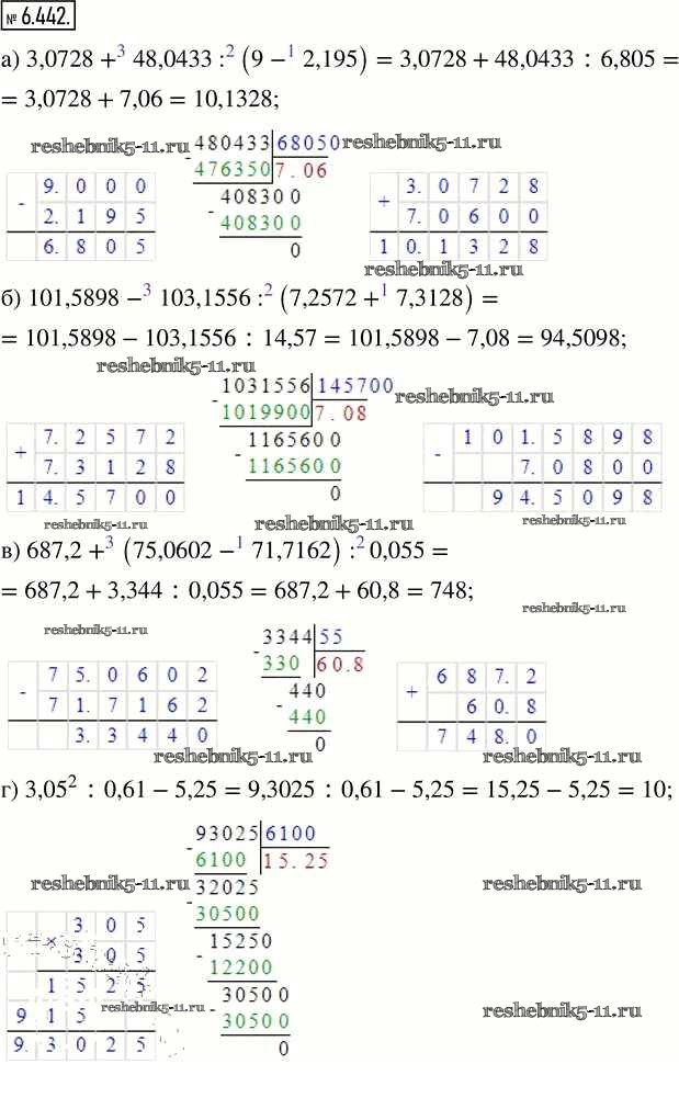 Готовая домашняя работа с ответами по Математике за 5 класс Виленкин, Жохов, Чесноков, Александрова, Шварцбурд Учебник Часть 2 Просвещение 2021 - Глава 6. Десятичные дроби 6.442