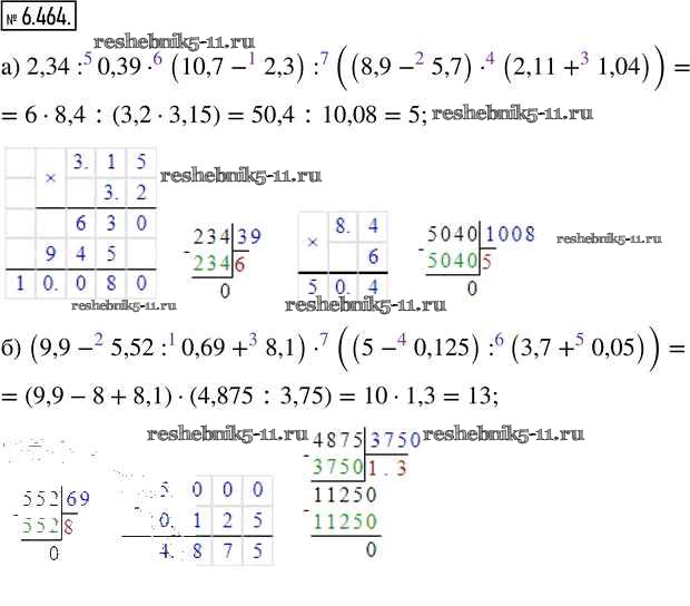 Готовая домашняя работа с ответами по Математике за 5 класс Виленкин, Жохов, Чесноков, Александрова, Шварцбурд Учебник Часть 2 Просвещение 2021 - Глава 6. Десятичные дроби 6.464