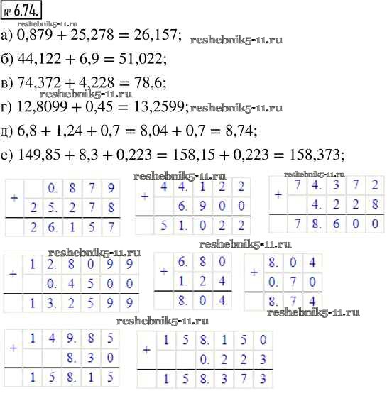 Готовая домашняя работа с ответами по Математике за 5 класс Виленкин, Жохов, Чесноков, Александрова, Шварцбурд Учебник Часть 2 Просвещение 2021 - Глава 6. Десятичные дроби 6.74