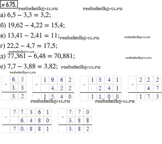 Готовая домашняя работа с ответами по Математике за 5 класс Виленкин, Жохов, Чесноков, Александрова, Шварцбурд Учебник Часть 2 Просвещение 2021 - Глава 6. Десятичные дроби 6.75