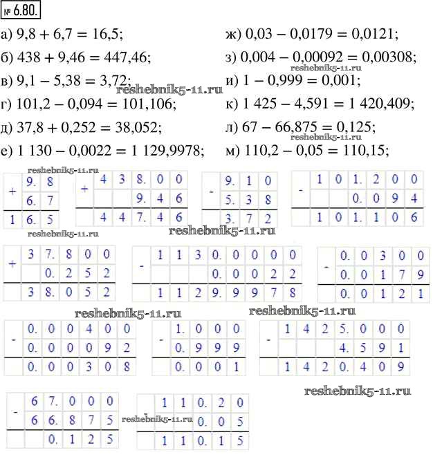 Готовая домашняя работа с ответами по Математике за 5 класс Виленкин, Жохов, Чесноков, Александрова, Шварцбурд Учебник Часть 2 Просвещение 2021 - Глава 6. Десятичные дроби 6.80