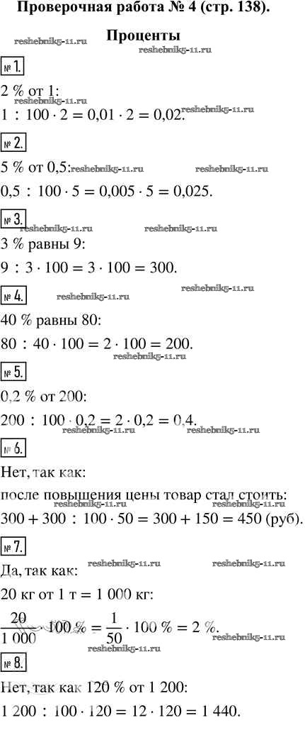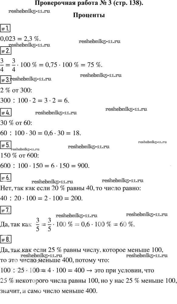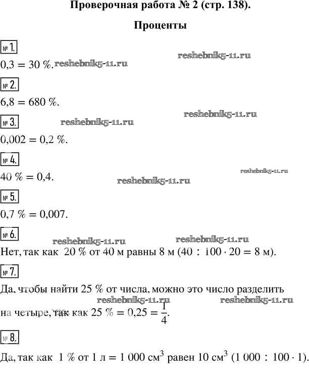 Готовая домашняя работа с ответами по Математике за 5 класс Виленкин, Жохов, Чесноков, Александрова, Шварцбурд Учебник Часть 2 Просвещение 2021 - Проверочные работы стр.138