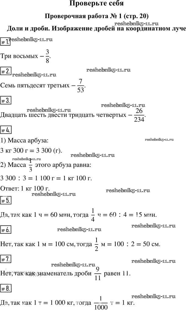 Готовая домашняя работа с ответами по Математике за 5 класс Виленкин, Жохов, Чесноков, Александрова, Шварцбурд Учебник Часть 2 Просвещение 2021 - Проверочные работы стр.20