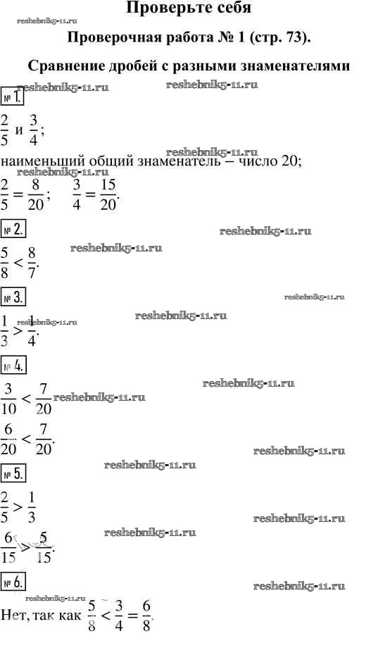 Готовая домашняя работа с ответами по Математике за 5 класс Виленкин, Жохов, Чесноков, Александрова, Шварцбурд Учебник Часть 2 Просвещение 2021 - Проверочные работы стр.73