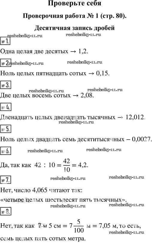 Математика за 5 класс Виленкин Учебник Просвещение проверочная работа стр.80