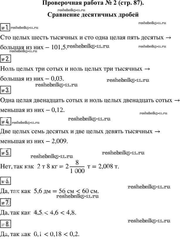 Готовая домашняя работа с ответами по Математике за 5 класс Виленкин, Жохов, Чесноков, Александрова, Шварцбурд Учебник Часть 2 Просвещение 2021 - Проверочные работы стр.87