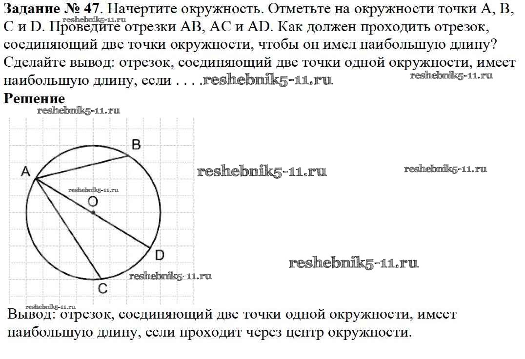 Готовая домашняя работа с ответами по Математике за 5 класс Дорофеев, Шарыгин, Суворова, Бунимович, Кузнецова, Минаева, Рослова Учебник Просвещение 2015 ФГОС - 1.4. Окружность 47