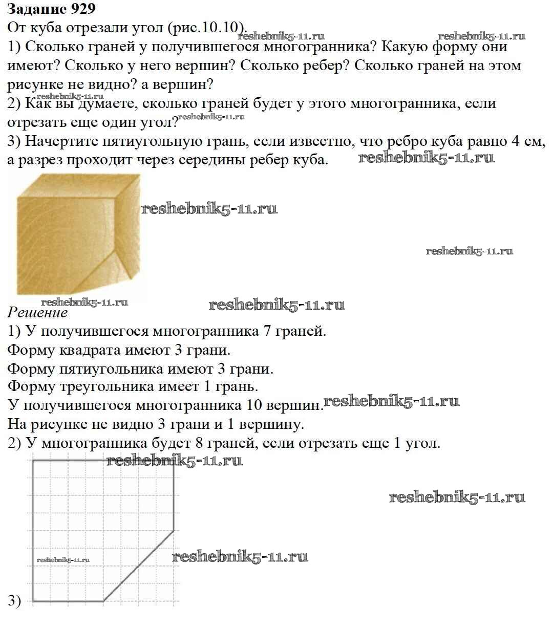 Готовая домашняя работа с ответами по Математике за 5 класс Дорофеев, Шарыгин, Суворова, Бунимович, Кузнецова, Минаева, Рослова Учебник Просвещение 2015 ФГОС - 10.1. Геометрические тела и их изображение 929