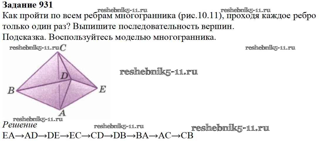Готовая домашняя работа с ответами по Математике за 5 класс Дорофеев, Шарыгин, Суворова, Бунимович, Кузнецова, Минаева, Рослова Учебник Просвещение 2015 ФГОС - 10.1. Геометрические тела и их изображение 931