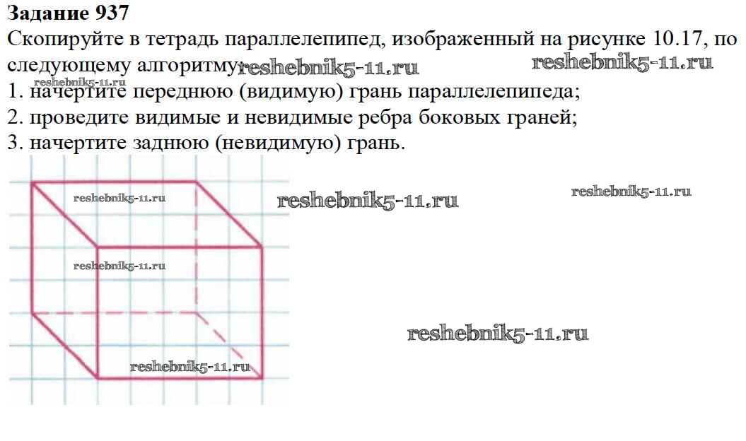 Готовая домашняя работа с ответами по Математике за 5 класс Дорофеев, Шарыгин, Суворова, Бунимович, Кузнецова, Минаева, Рослова Учебник Просвещение 2015 ФГОС - 10.2. Параллелепипед 937