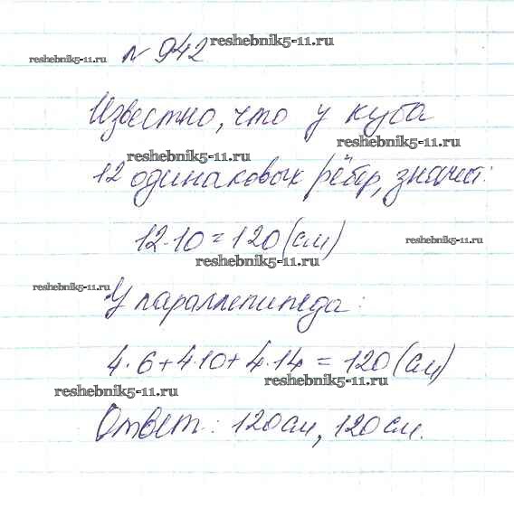 Готовая домашняя работа с ответами по Математике за 5 класс Дорофеев, Шарыгин, Суворова, Бунимович, Кузнецова, Минаева, Рослова Учебник Просвещение 2015 ФГОС - 10.2. Параллелепипед 942