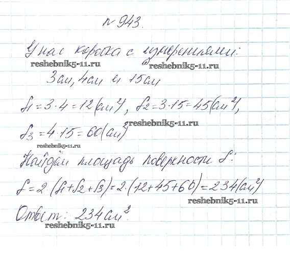 Готовая домашняя работа с ответами по Математике за 5 класс Дорофеев, Шарыгин, Суворова, Бунимович, Кузнецова, Минаева, Рослова Учебник Просвещение 2015 ФГОС - 10.2. Параллелепипед 943