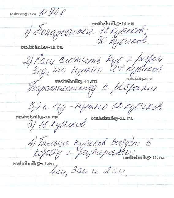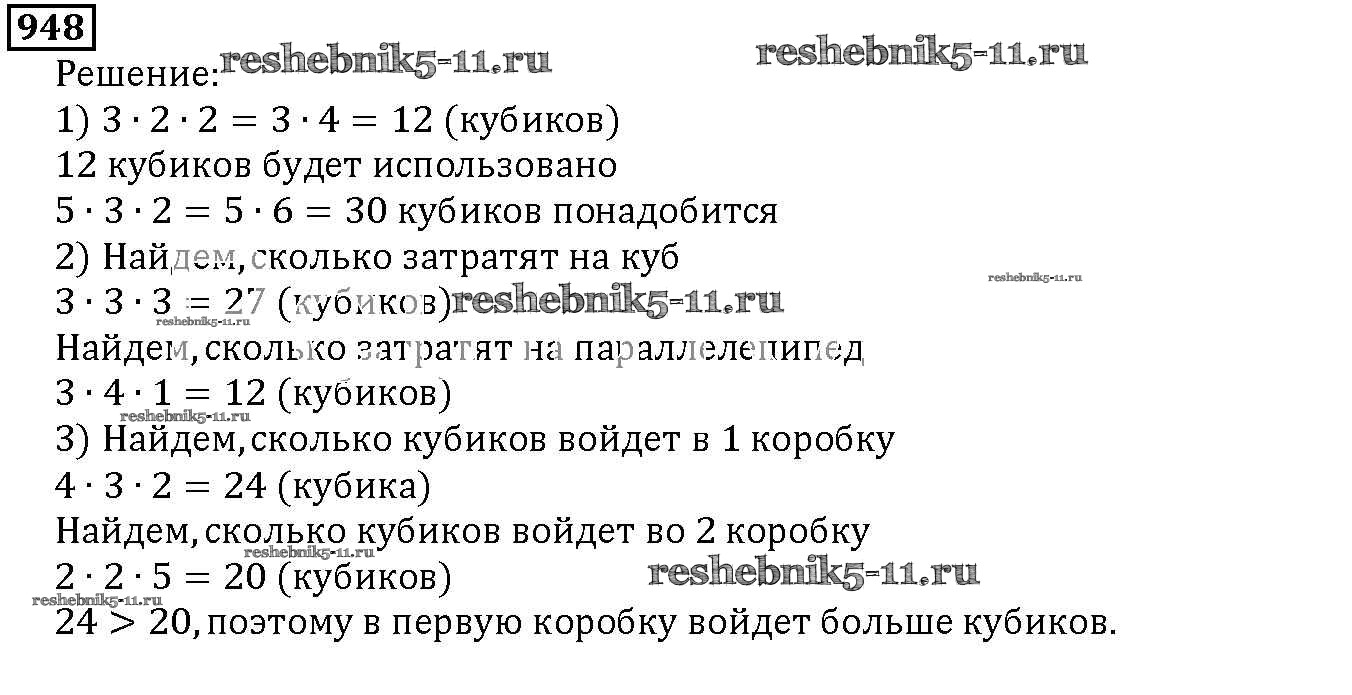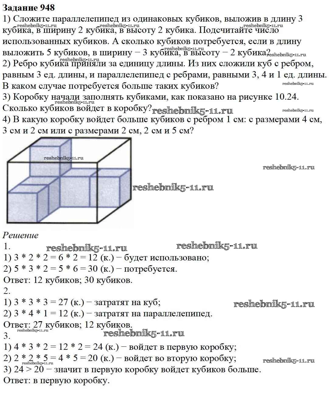 Готовая домашняя работа с ответами по Математике за 5 класс Дорофеев, Шарыгин, Суворова, Бунимович, Кузнецова, Минаева, Рослова Учебник Просвещение 2015 ФГОС - 10.2. Параллелепипед 948