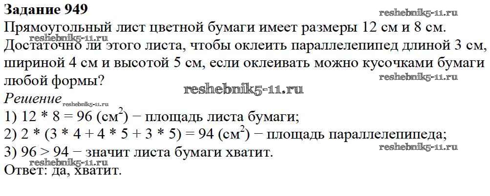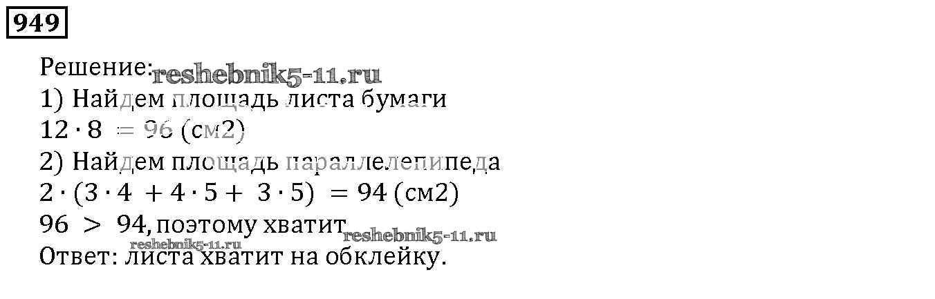 Готовая домашняя работа с ответами по Математике за 5 класс Дорофеев, Шарыгин, Суворова, Бунимович, Кузнецова, Минаева, Рослова Учебник Просвещение 2015 ФГОС - 10.2. Параллелепипед 949