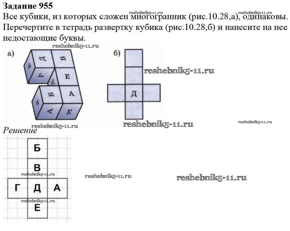 Готовая домашняя работа с ответами по Математике за 5 класс Дорофеев, Шарыгин, Суворова, Бунимович, Кузнецова, Минаева, Рослова Учебник Просвещение 2015 ФГОС - 10.2. Параллелепипед 955