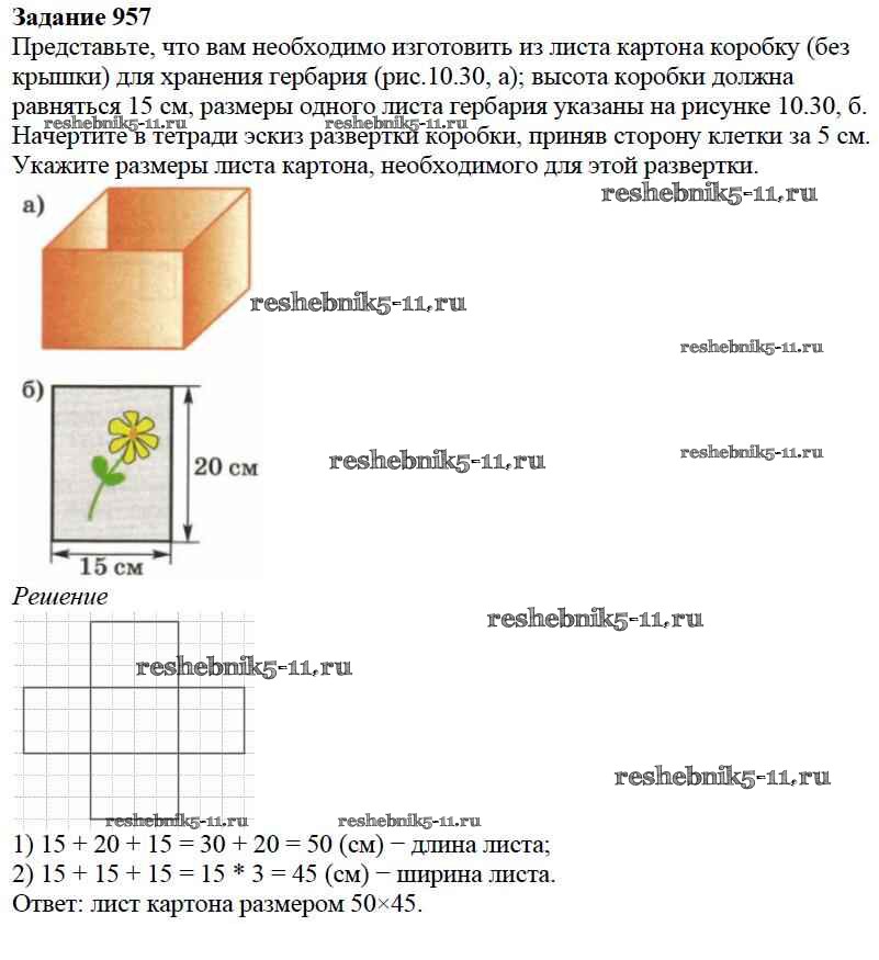Готовая домашняя работа с ответами по Математике за 5 класс Дорофеев, Шарыгин, Суворова, Бунимович, Кузнецова, Минаева, Рослова Учебник Просвещение 2015 ФГОС - 10.2. Параллелепипед 957
