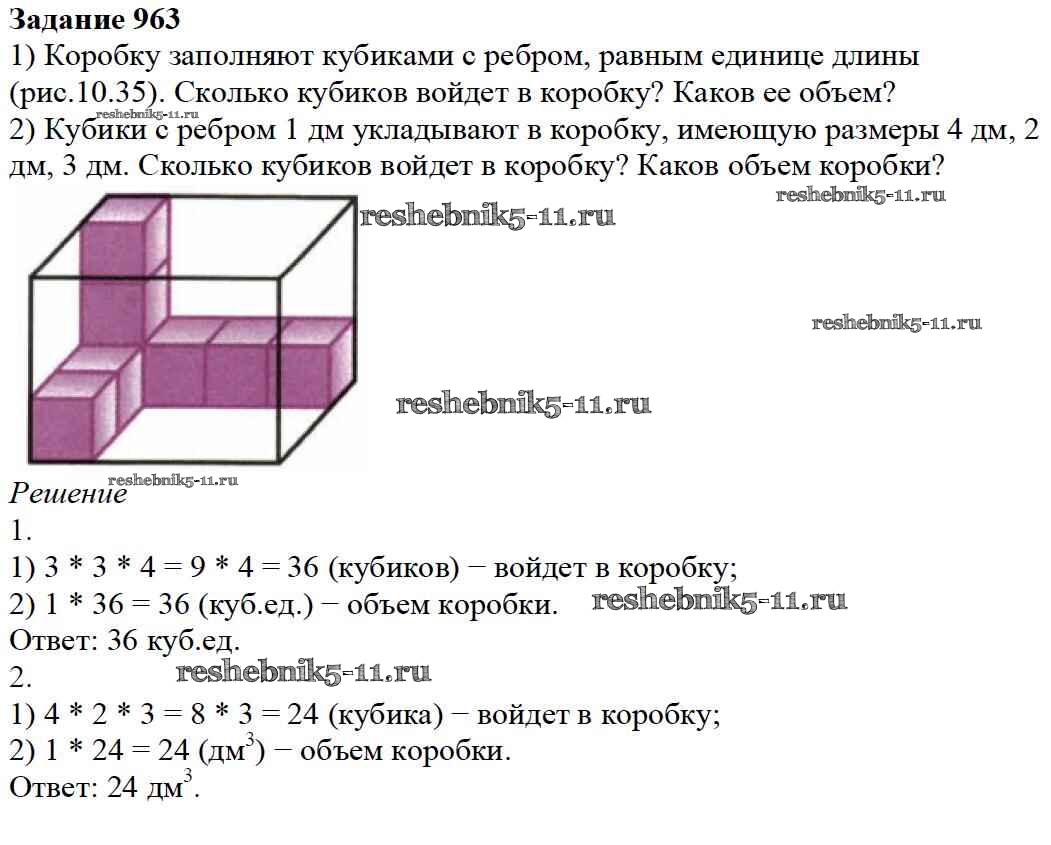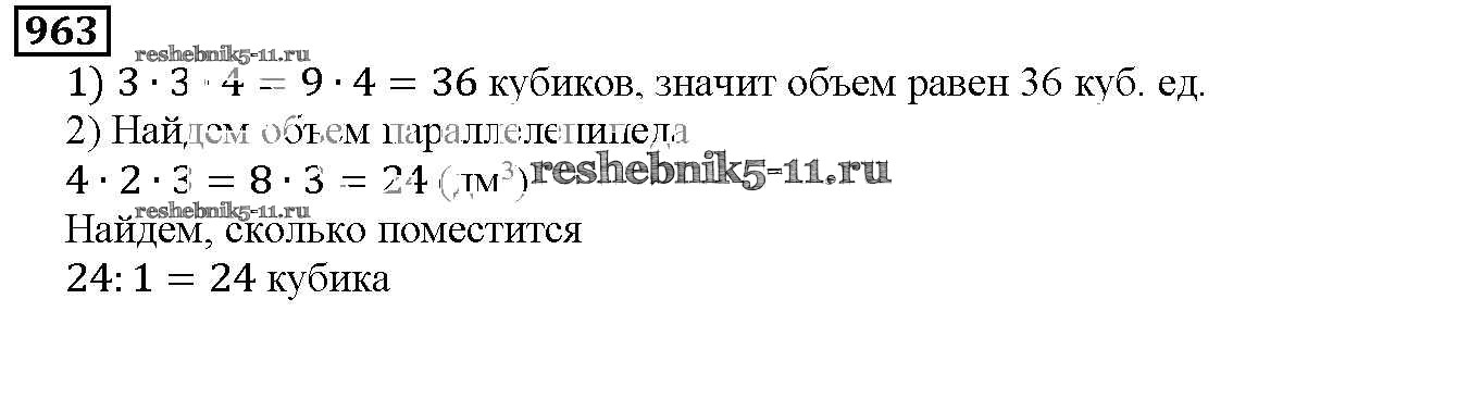 Готовая домашняя работа с ответами по Математике за 5 класс Дорофеев, Шарыгин, Суворова, Бунимович, Кузнецова, Минаева, Рослова Учебник Просвещение 2015 ФГОС - 10.3. Объем параллелепипеда 963