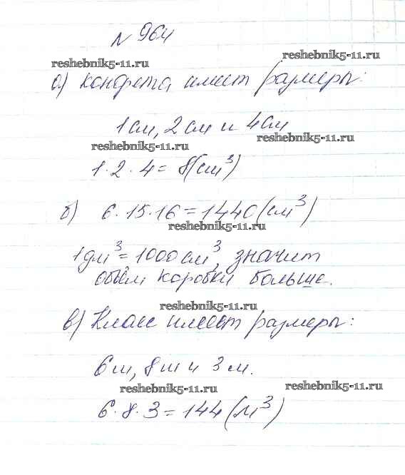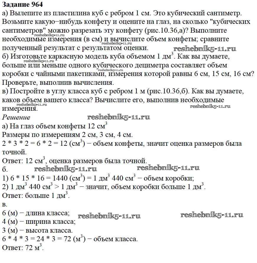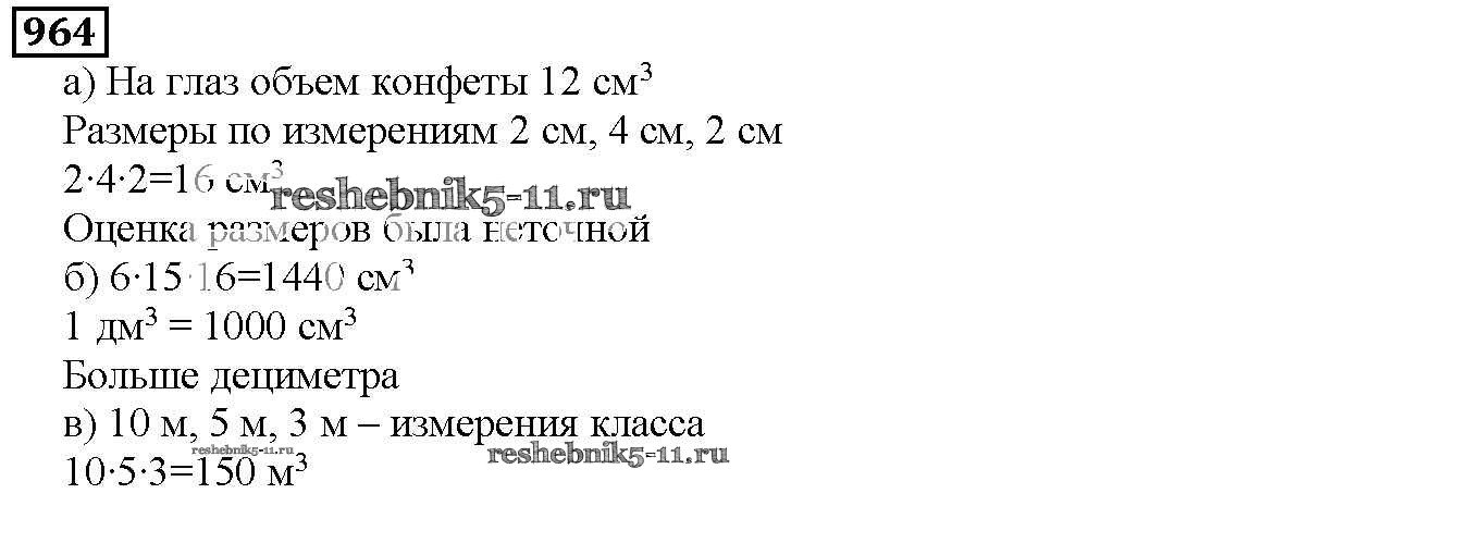 Готовая домашняя работа с ответами по Математике за 5 класс Дорофеев, Шарыгин, Суворова, Бунимович, Кузнецова, Минаева, Рослова Учебник Просвещение 2015 ФГОС - 10.3. Объем параллелепипеда 964