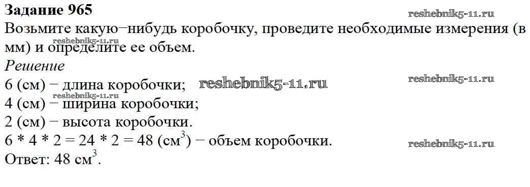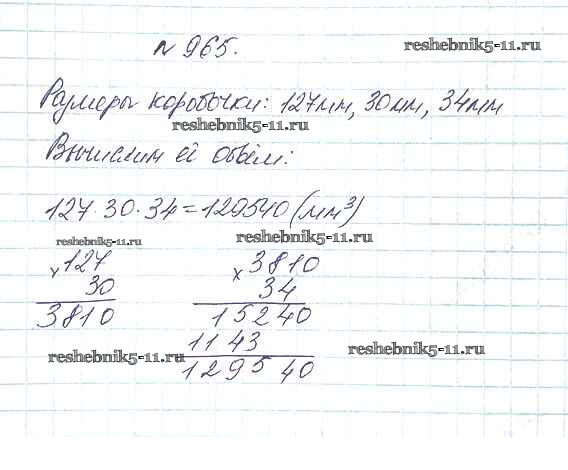 Готовая домашняя работа с ответами по Математике за 5 класс Дорофеев, Шарыгин, Суворова, Бунимович, Кузнецова, Минаева, Рослова Учебник Просвещение 2015 ФГОС - 10.3. Объем параллелепипеда 965