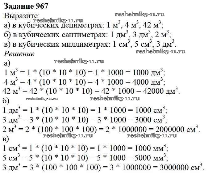 Готовая домашняя работа с ответами по Математике за 5 класс Дорофеев, Шарыгин, Суворова, Бунимович, Кузнецова, Минаева, Рослова Учебник Просвещение 2015 ФГОС - 10.3. Объем параллелепипеда 967