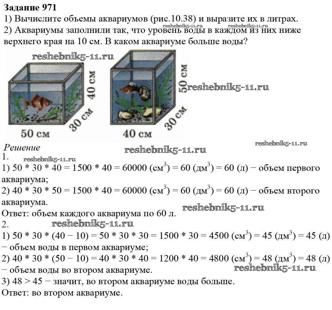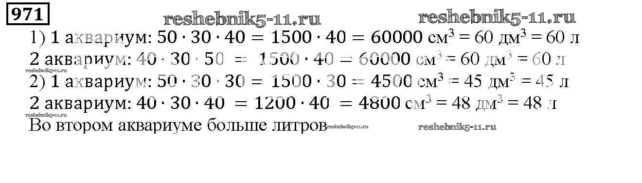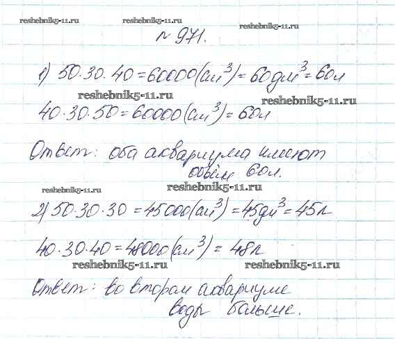 Готовая домашняя работа с ответами по Математике за 5 класс Дорофеев, Шарыгин, Суворова, Бунимович, Кузнецова, Минаева, Рослова Учебник Просвещение 2015 ФГОС - 10.3. Объем параллелепипеда 971