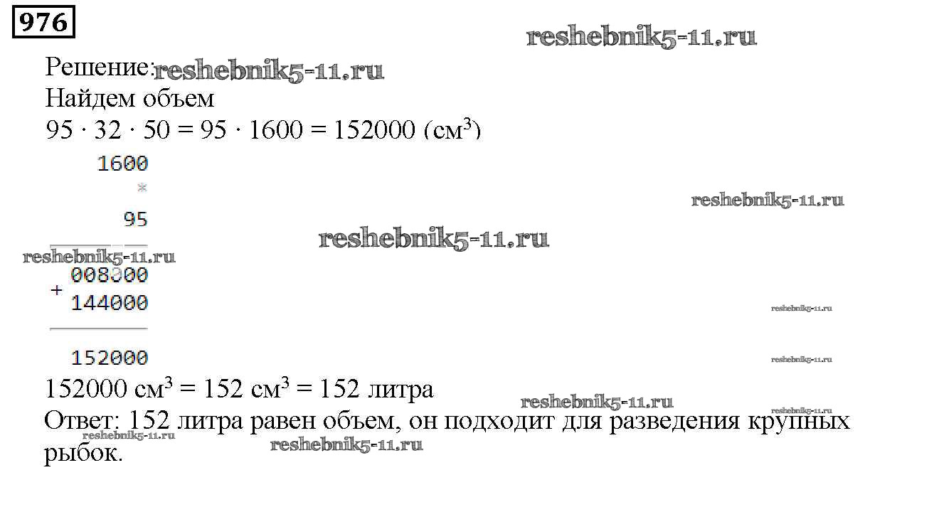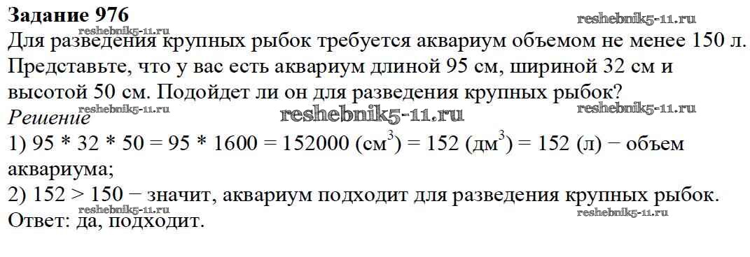 Готовая домашняя работа с ответами по Математике за 5 класс Дорофеев, Шарыгин, Суворова, Бунимович, Кузнецова, Минаева, Рослова Учебник Просвещение 2015 ФГОС - 10.3. Объем параллелепипеда 976