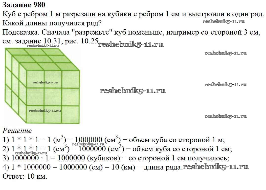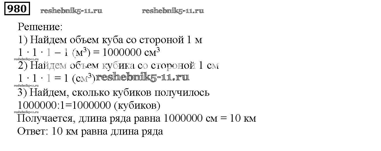 Готовая домашняя работа с ответами по Математике за 5 класс Дорофеев, Шарыгин, Суворова, Бунимович, Кузнецова, Минаева, Рослова Учебник Просвещение 2015 ФГОС - 10.3. Объем параллелепипеда 980