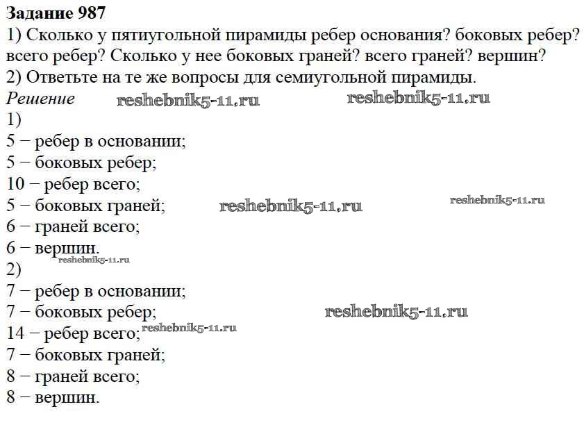 Готовая домашняя работа с ответами по Математике за 5 класс Дорофеев, Шарыгин, Суворова, Бунимович, Кузнецова, Минаева, Рослова Учебник Просвещение 2015 ФГОС - 10.4. Пирамида 987