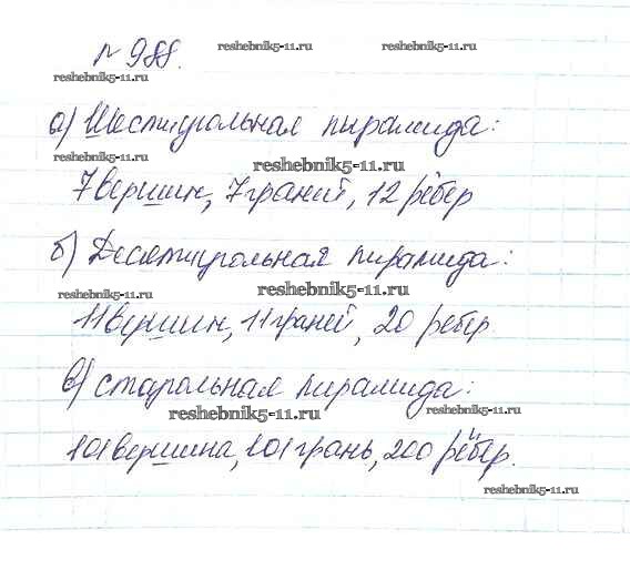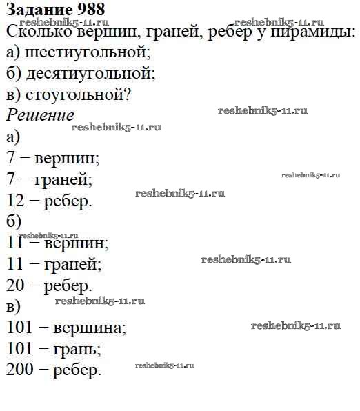 Готовая домашняя работа с ответами по Математике за 5 класс Дорофеев, Шарыгин, Суворова, Бунимович, Кузнецова, Минаева, Рослова Учебник Просвещение 2015 ФГОС - 10.4. Пирамида 988
