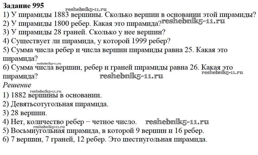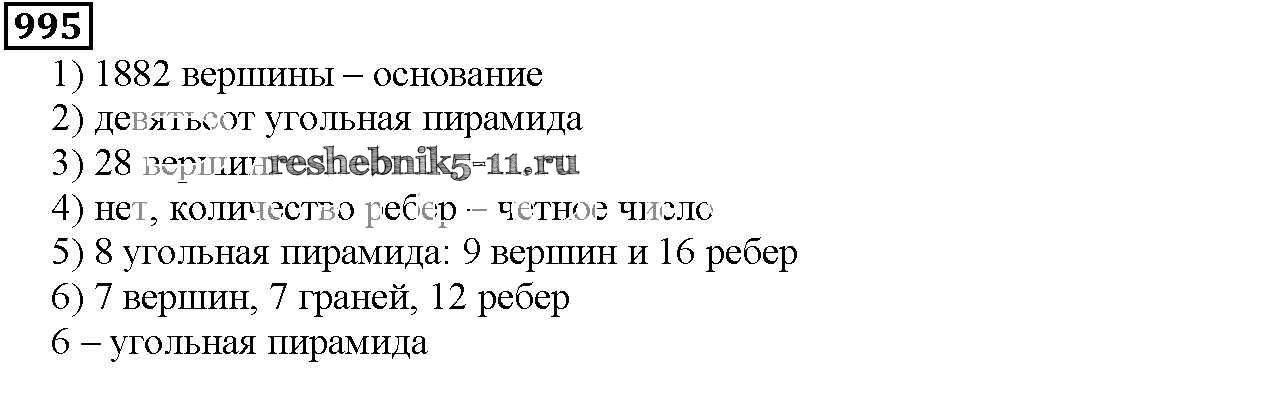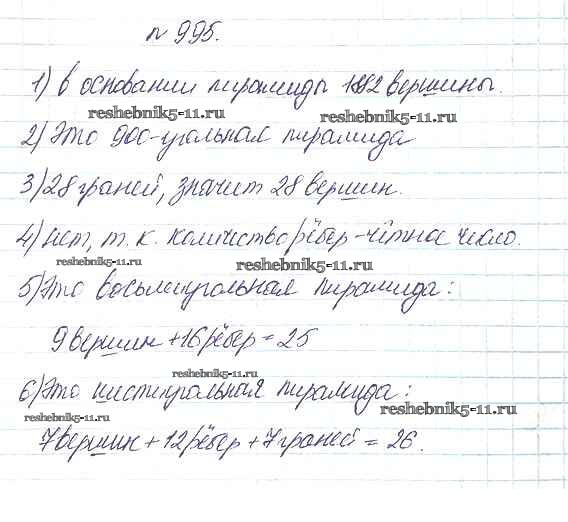 Готовая домашняя работа с ответами по Математике за 5 класс Дорофеев, Шарыгин, Суворова, Бунимович, Кузнецова, Минаева, Рослова Учебник Просвещение 2015 ФГОС - 10.4. Пирамида 995